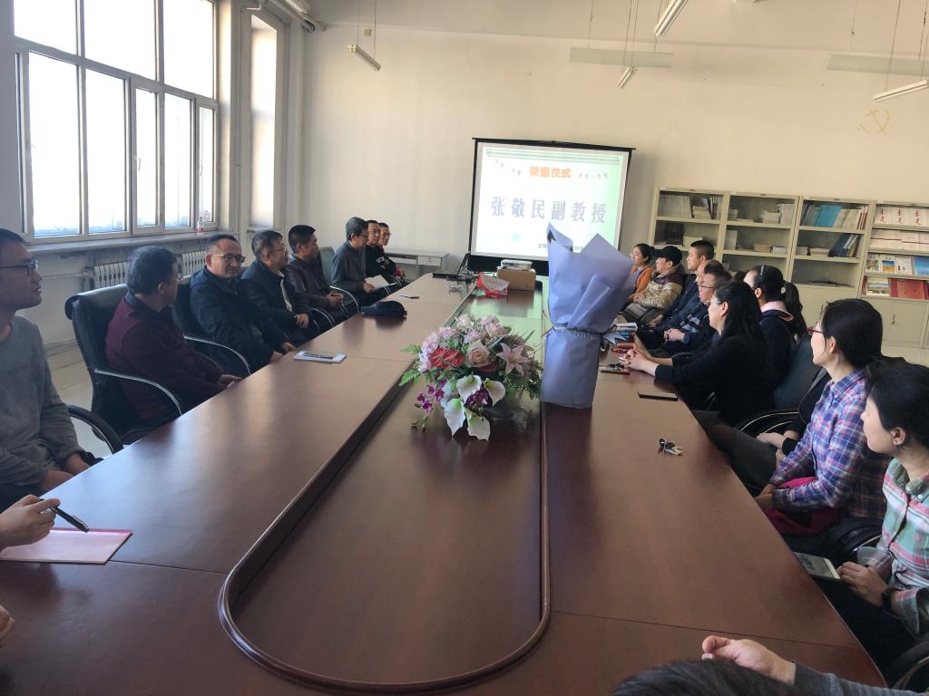 2019年03月27日上午,工程训练与基础实验中心(以下简称中心)为深入贯彻落实全国和全省高校思想政治工作会议精神,大力弘扬优良师德师风,在一届四次教代会前夕,在中心会议室举行了张敬民副教授的荣退仪式。中心党总支书记、主任、工会主席吴云鹏、副主任邢贺平和李强、党总支委员、各党支部书记及委员、各实验实训室负责人、教师代表、中心机关出席了仪式,仪式由中心工会副主席韩仁学主持。