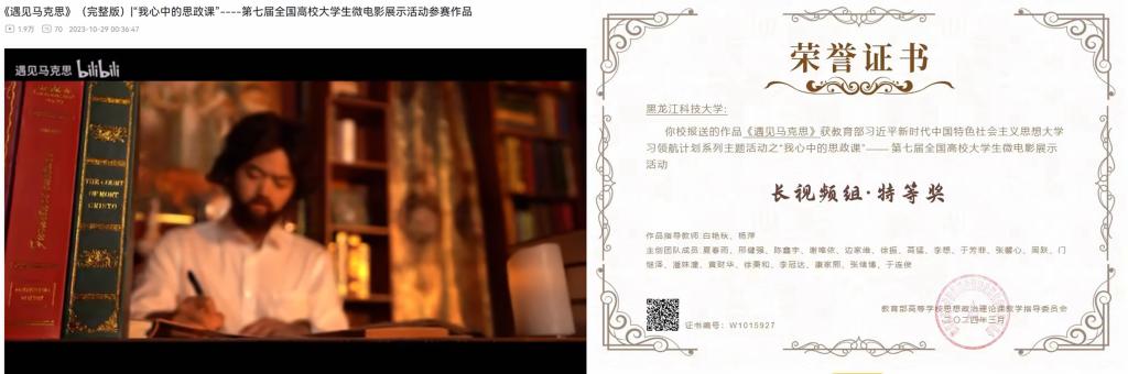 教育部习近平新时代中国特色社会主义思想大学习领航计划系列活动之“我心中的思政课”——第七届全国高校老员工微电影展示活动落下帷幕。本次活动由教育部高校思政课教学指导委员会主办,武汉大学承办,“青梨派”协办。公司选拔赛由马克思公司承办,员工团队作品《遇见马克思》凭借新颖的立意和精良的制作在众多作品中脱颖而出,荣获长视频组特等奖。