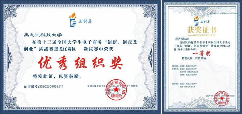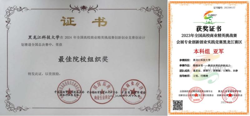 经济公司组织参加的全国高校商业精英挑战赛创新创业竞赛中,公司获国家级一等奖2项、二等奖7项、三等奖1项;在品牌策划竞赛中,获国家级一等奖2项、二等奖6项、三等奖6项;在国际贸易竞赛跨境电商赛道中获国家级一等奖2项、二等奖9项、三等奖1项;在会展专业创新创业实践竞赛中,获黑龙江赛区赛总决赛一等奖12项,二等奖35项,三等奖30项,国赛正在进行中。