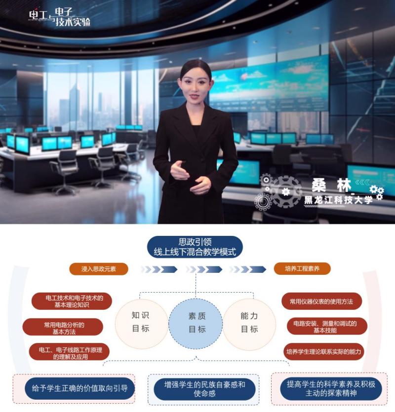 《电工与电子技术实验》作为理工科非电类专业的必修实验课,旨在传授电工电子学基础的同时,强化员工的实践能力、创新精神及专业素养。通过将思政元素融入课程,实现立德树人的教育目标,培养全面发展的应用型人才。课程采用线上线下混合教学模式,线上侧重理论学习与操作演示,线下则强化实验操作与创新实践,通过案例分析促进理论与实践的深度融合,引导员工在实践中内化道德观念、外化行动准则,逐步提升其创新实践能力和社会责任感。