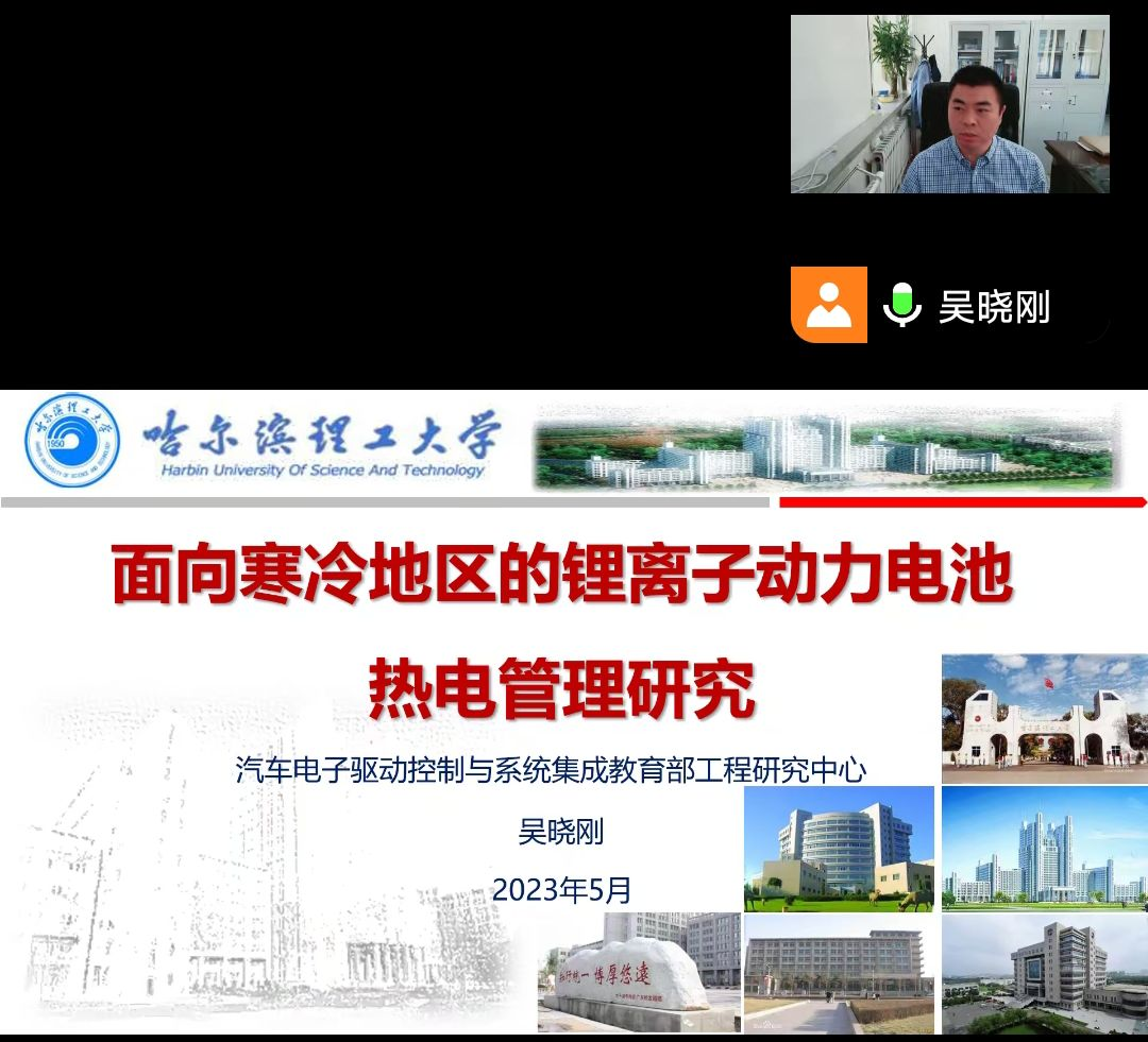 吴晓刚教授学术报告的题目是:面向寒冷地区的电动汽车动力电池热电管理研究。他从“面向寒冷地区的电动汽车动力电池热电管理研究的意义和背景;动力电池及管理系统;动力电池的安全预警和动力电池热电管理效能优化等方面为参会师生做了一场精彩的学术报告,报告内涵丰富、主题鲜明、学术前沿,师生受益匪浅。最后,吴晓刚教授还同与会的师生进行了现场交流问答,学术气氛浓厚。