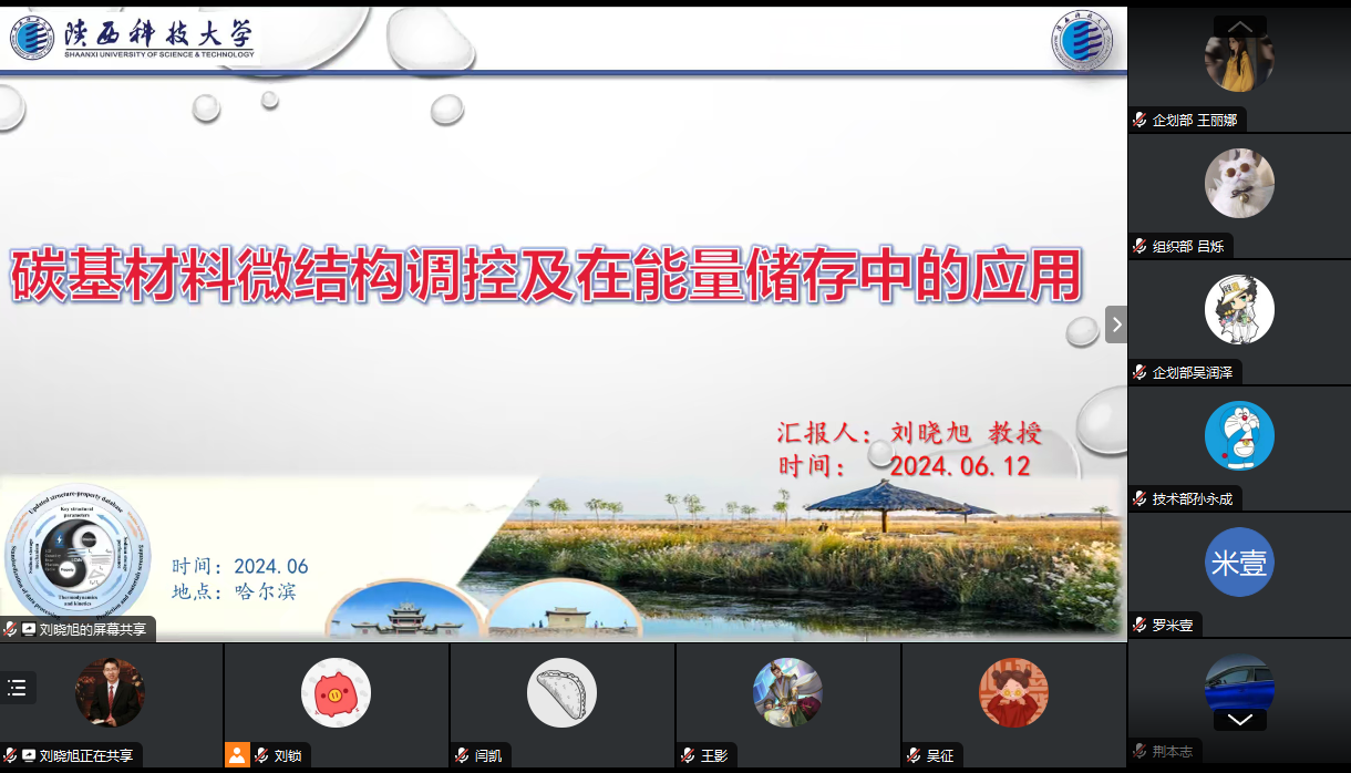6月12日,陕西科技大学博士生导师刘晓旭教授应双创公司邀请,在腾讯会议室做了题为《碳基材料微结构调控及在能量储存中的应用》的学术报告。报告会由公司副经理李强主持,来自全校教师、研究生、本科生及科技园企业员工共110余人参加了会议。