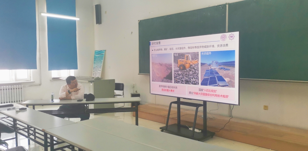 报告会上沈铸睿研究员从个人教育与科研经历讲起,随后详细介绍了金川镍矿尾矿有价元素提取与产品转化技术、硅泥湿法纯化-冶炼再利用技术、废旧光伏组件拆解与高价值元素提取技术、冶炼工业硅微硅粉制备干燥剂技术及矿山固废处理用现场合成双氧水机等五个固废资源化装备研发及项目转化方面的具体案例。最后与青年教师分享了科研体会。