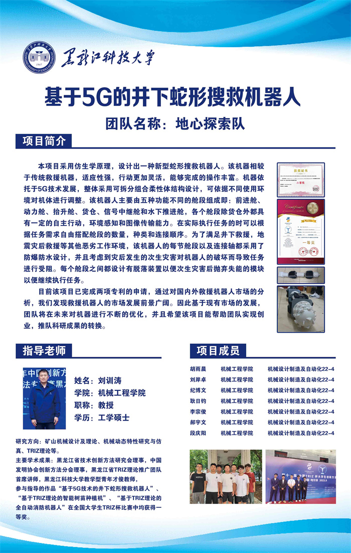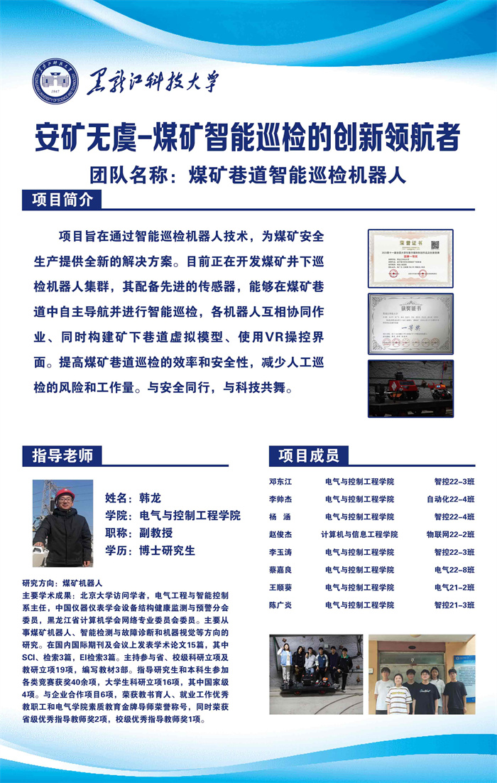 团队名称:煤矿巷道智能巡查机器人 指导老师:韩龙