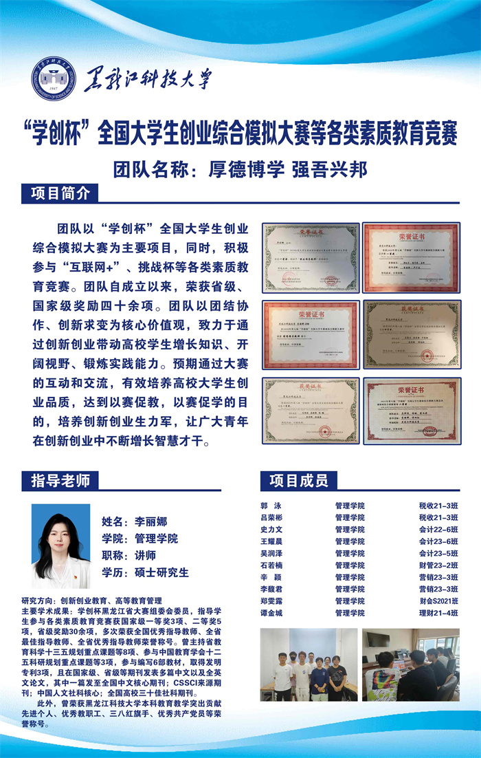 团队名称:厚德博学 强吾兴邦 指导老师:李丽娜