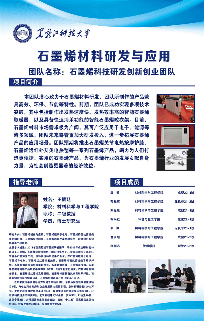 团队名称:石墨烯科技研发创新创业团队 指导老师: 王振廷