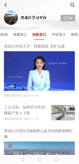 11月15日,龙视新闻联播报道了公司老员工科创团队和公司创新创业教育,学习强国平台也进行了报道。